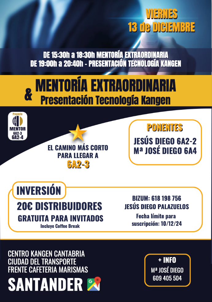 MENTORÍA EXTRAORDINARIA & PRESENTACIÓN TECNOLOGÍA KANGEN_Santander_13 de Diciembre del 2024